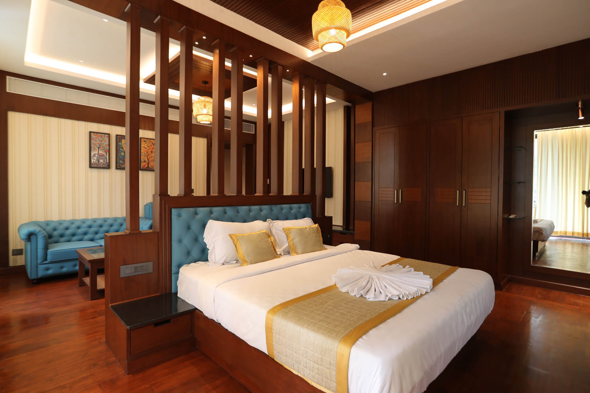 Rich textures, indulgent space, and curated comfort, our Royal Suites are perfect for those who appreciate elegance with a touch of nature. An ideal haven for those who seek an experience that whispers indulgence at every turn.
